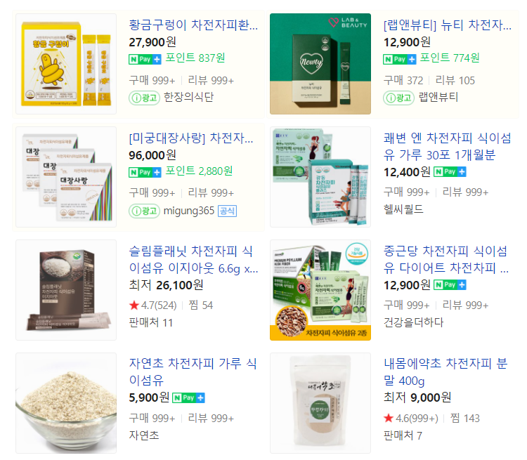 그중에 나는 가루로 된 차전자피 제품을 구매했다.